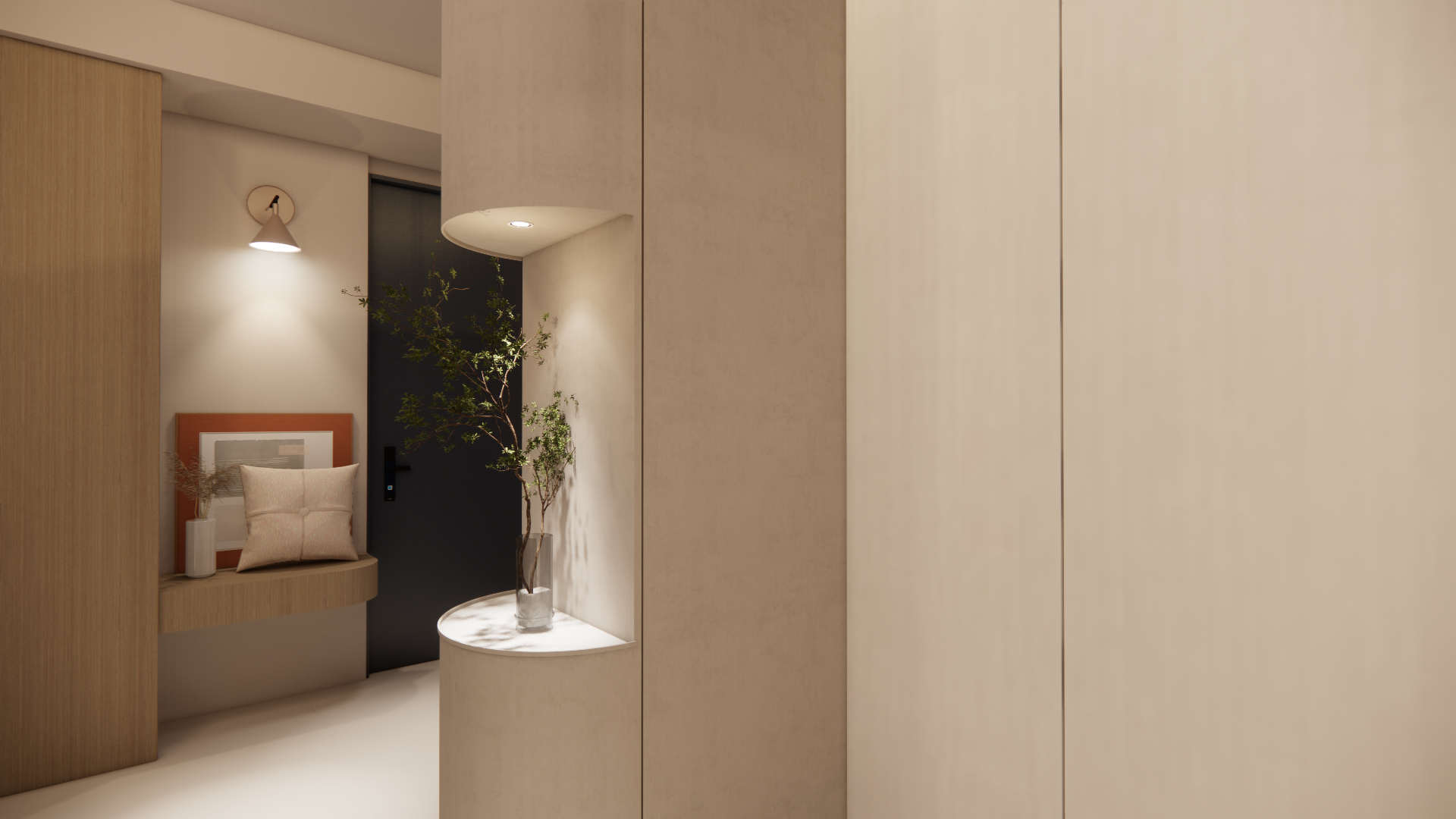 •弧形造型語彙柔化視覺,提升生活感